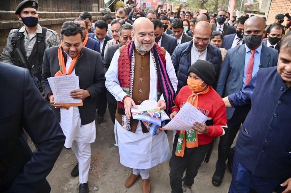 In the evening Shah further held a door-to-door campaign in Yaiskul assembly constituency of Imphal where incumbent CAF&PD minister Thokchom Satyabrata Singh is in the fray seeking re-election.