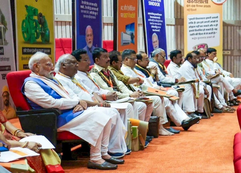 New Delhi: Prime Minister Narendra Modi attends the ‘Sansad Karyashala’ with MP colleagues and senior leaders from across India, in New Delhi, Sunday, September 7, 2025. (IANS)