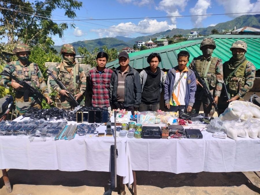 The seized materials include one satellite phone, five cellphones, eight SIM cards, 105 bullets of point .22 rifle, 35 packets of potassium, 9,000 airgun pellets, 2,79,700 kyat (Myanmar currency), 49 adapters, 50 antennas, 51 battery chargers, three digital transceivers, 10 handcuffs, 16 combat T-shirts, five magazine pouches, five bullet-proof jackets and 19 black suits.