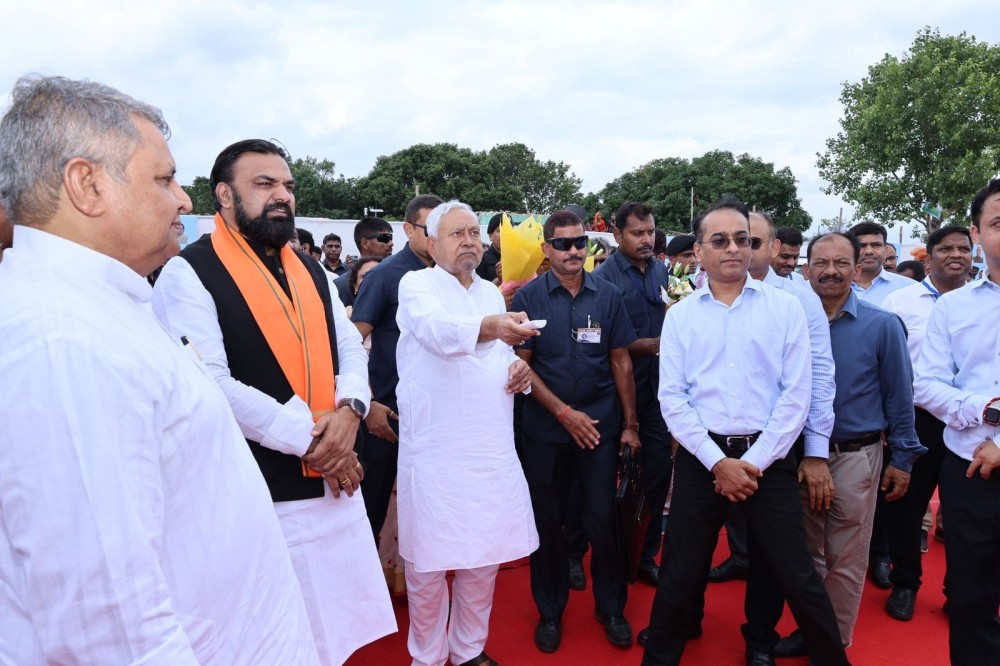 Accompanied by Deputy Chief Ministers Samrat Choudhary, Vijay Kumar Sinha and Water Resources Minister Vijay Kumar Chaudhary, the Bihar CM laid the foundation of the projects in the district, covering road, irrigation, tourism, urban infrastructure, and flood management sectors.