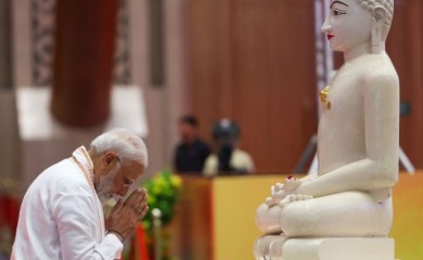 New Delhi, April 10 (IANS) Prime Minister Narendra Modi extended his greetings to the nation on the occasion of Mahavir Jayanti, saying Bhagwan Mahavir's ideals give strength to countless people worldwide.Comme