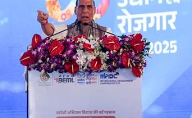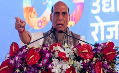 New Delhi, August 10 (IANS) In a blistering attack on global trade hostility, Defence Minister Rajnath Singh made a veiled attack on the US President Donald Trump and his tariff tactics, accusing of making “d