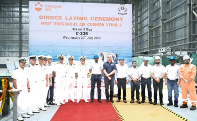 New Delhi, July 30 (IANS): The construction of the country’s first indigenously built Air Cushion Vehicle (ACV) for the Indian Coast Guard kicked off on Wednesday with the girder laying and commencement of th