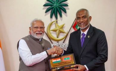 Male, July 25 (IANS) Prime Minister Narendra Modi on Friday held wide ranging talks with Maldives President Mohamed Muizzu at the President’s Office in Male as both leaders reviewed the entire spectrum of Ind