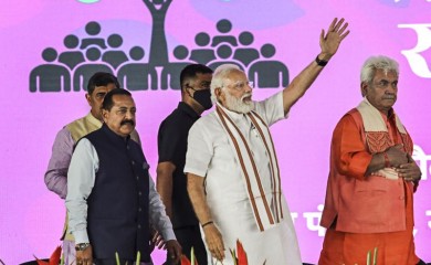 Palli (J-K), April 24 (PTI): A sea of people on Sunday turned up to listen to Prime Minister Narendra Modi here, his first public appearance in Jammu and Kashmir after the abrogation of Article 370.
