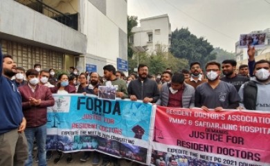 New Delhi, December 28 (IANS): The resident doctors protesting across the national capital to expedite the counselling of NEET-PG 2021, on Tuesday demanded an apology from Delhi Police over cops' "ster