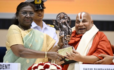 New Delhi, May 16 (IANS) President Droupadi Murmu on Friday conferred the 58th Jnanpith Award on Sanskrit scholar Jagadguru Rambhadracharya and also praised his invaluable contributions in the field of literatu