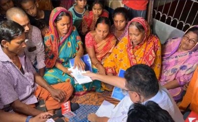 Kolkata, April 26 (IANS) Family members of the father and the son who were killed in communal violence in Murshidabad district accepted the compensation from the Leader of the Opposition (LoP) Suvendu Adhikari