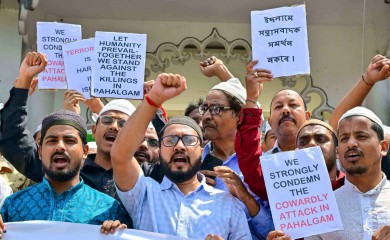 New Delhi, April 25 (IANS) In a strong and unified expression of grief and condemnation, members of the Muslim community across India observed a solemn protest during Friday prayers, calling for decisive action