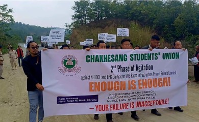 Launches phase 2 protests over delay of Kohima-Jessami road Our CorrespondentPhek | May 10The Chakhesang Students’ Union (CSU) on Saturday escalated its protest against the National Highways and Infrastr