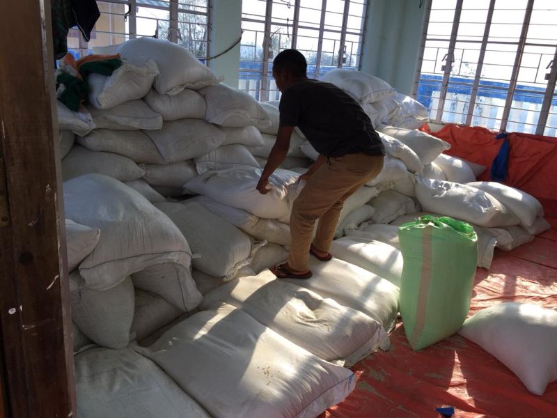 Sacks of rice distributed to the people of 41 A/C Tizit constituency donated by Minister, P Paiwang Konyak to people struggling to feed themselves due to current lockdown necessitated by the COVID-19 pande