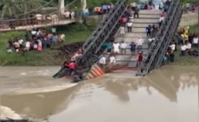 Imphal, June 30 (IANS) A bridge over the Imphal River in Manipur's Imphal West District collapsed when a wood-laden truck was crossing it on Sunday, sending the vehicle plunging into the water, officials said.