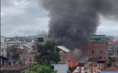 Tension resurfaced in the New Lambulane area of Imphal East district on Sunday after five houses were gutted in the afternoon.
