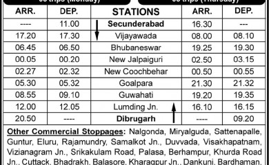 Guwahati, May 11 (MExN): To clear the extra rush of passengers, the Northeast Frontier Railway (NFR) has decided to operate a summer special train between Dibrugarh and Secunderabad for three trips in both dire