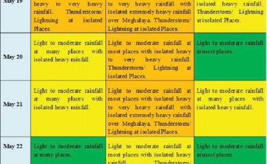 Dimapur, May 19 (MExN): Enhanced rainfall activity is expected to continue over the weekend in the North-East, including Nagaland, according to an update by the India Meteorological Department (IMD) Regional Me