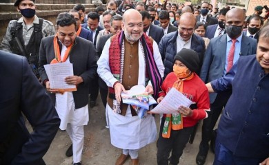 Union Home minister Amit Shah, who arrived in Imphal to take part in BJP election campaign in the poll-bound Manipur