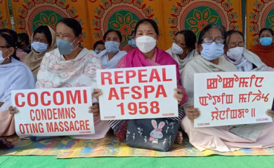 Several civil society organizations took part in a sit-in-protest in Imphal today to condemn the Oting killings in Nagaland state under Mon district and also show sol