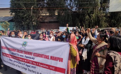 The Federation of Government College Teachers’ Association (FEGOCTA) has condemned the police action for halting their protest rally in Imphal.