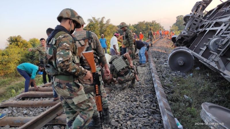 Indian Army personnel assisting the civil and rail authorities after the derailment of a goods train on December 8 near Naharkhatiya Railway Station. (Photo Courtesy: PRO, Defence)