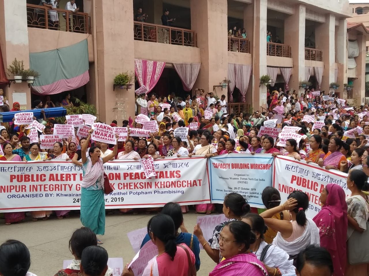 A group of protestors against 'Framework Agreement' in Imphal on October 23. (NNN Photo)