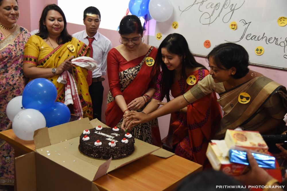 NERIM Director Prof (Dr) Sangeeta Tripathi along with other teachers cuts a cake in celebration of Teacher’s Day at NERIM on September 5. (Photo Courtesy: NERIM)