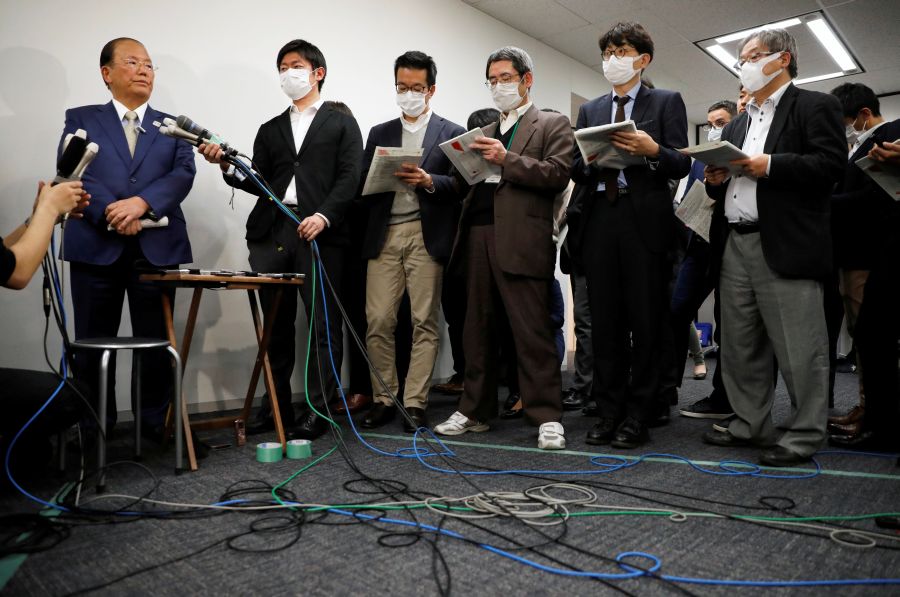 Toshiro Muto, Tokyo 2020 Organizing Committee CEO, addresses the Olympic torch relay during a news conference, as the spread of the coronavirus disease (COVID-19) continues, in Tokyo, Japan March 17, 2020. REUT