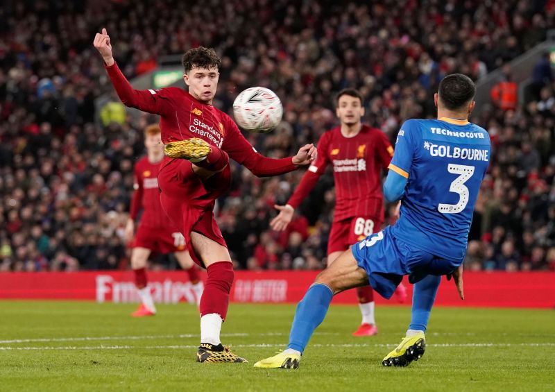 Liverpool's Neco Williams shoots at goal. (Reuters Photo)
