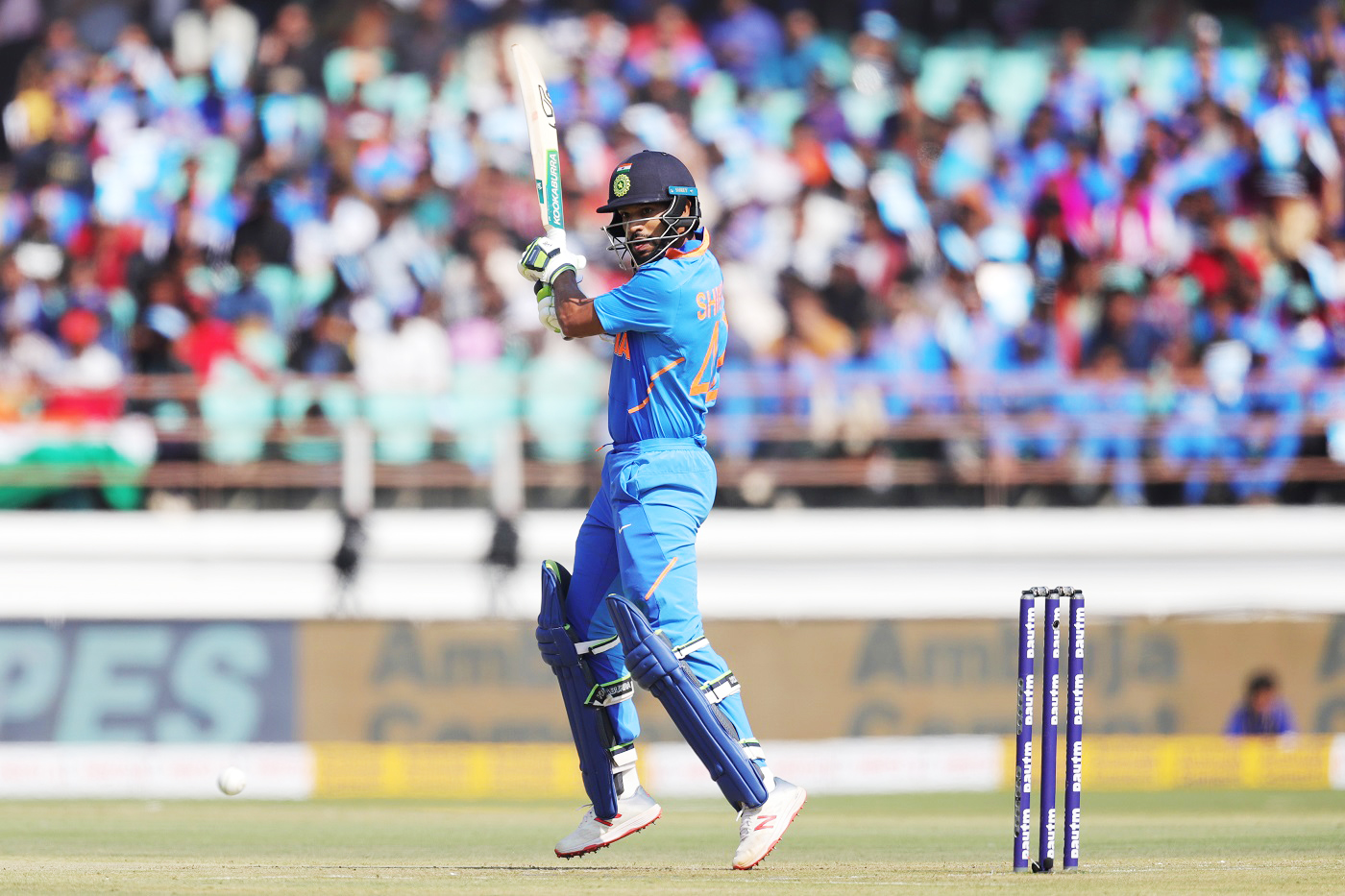 Shikhar Dhawan of India bats during the 2nd One day International match between India and Australia held at the Saurashtra Cricket Association Stadium, Rajkot on January 17. (Photo Courtesy: BCCI)