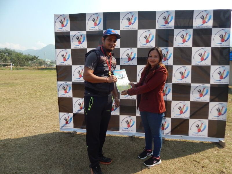 The man of the match, Rakesh of Whiskers CC receiving his award.