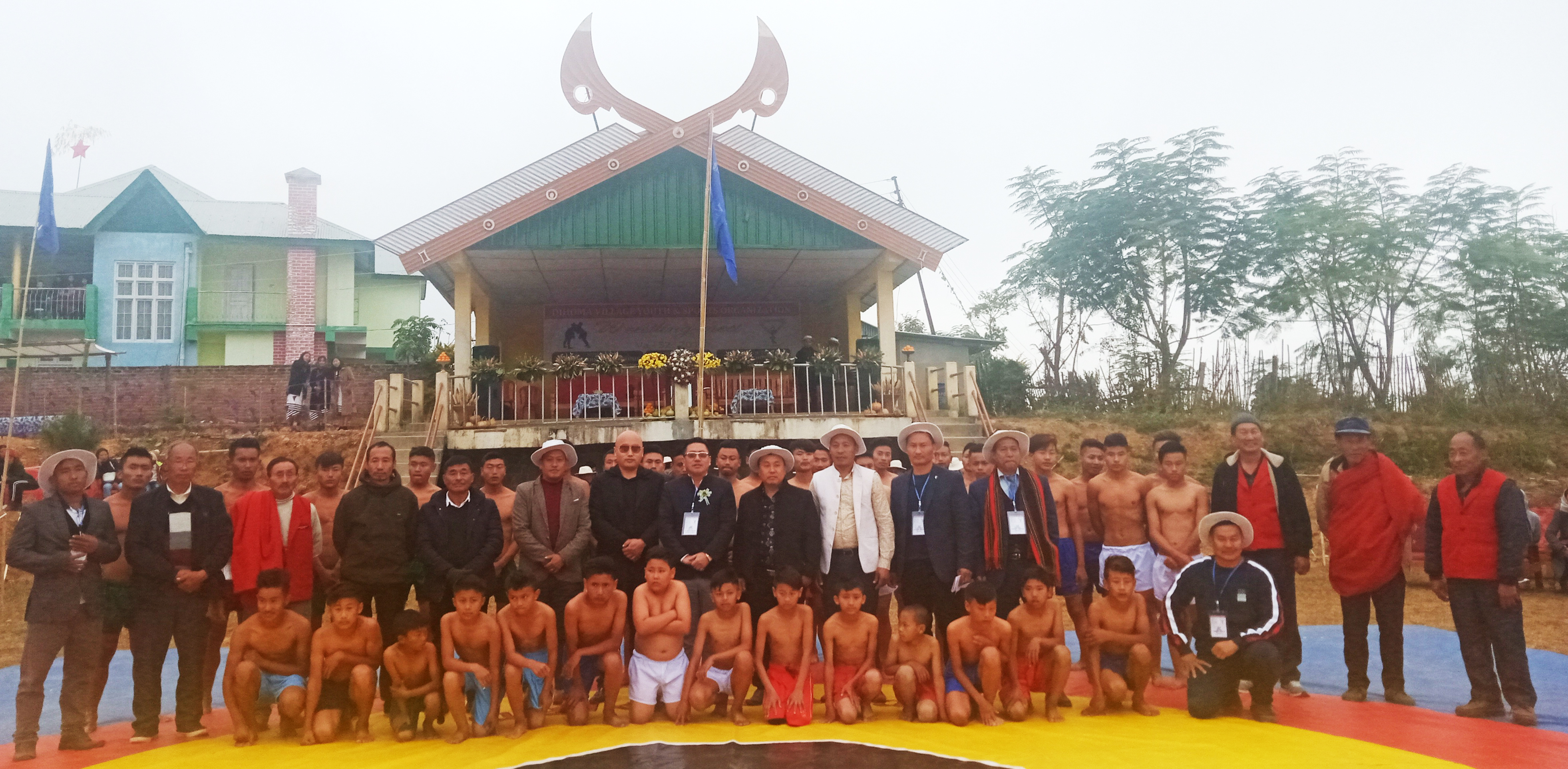 Neiketouzo Kenguruse and others with the wrestlers during the 52nd wrestling meet 2019 of DVYSO on December 27 at Dihoma.