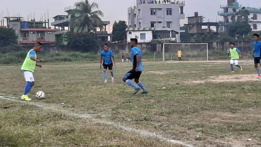 Players in action in a match between United XI and Shinning Star Club on November 5. (Morung Photo)