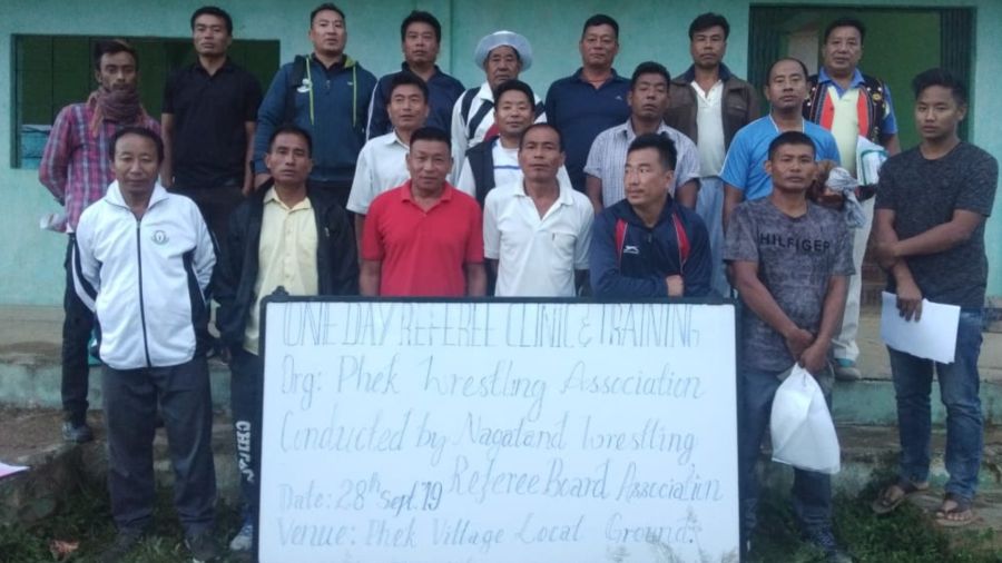Trainees, master trainers, PWA officials at the training of Referee Clinic & Technical orientation training held at Phek Village Local ground on September 28. (Photo Courtesy: PWA)