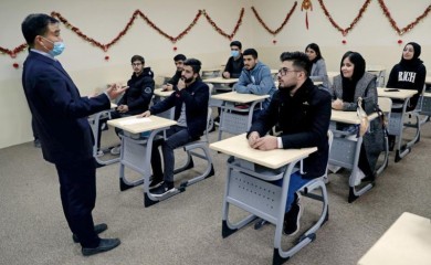 Irbil (Iraq), January 28 (AP): In a classroom in northern Iraq, Zhiwei Hu presides over his students as a conductor would an orchestra. He cues with a question, and the response from his students resounds in pe