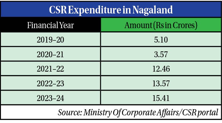 Nagaland’s share of Rs 15.41 crore or approximately 0.04% of the total CSR expenditure placed it among the lowest recipient States and Union Territories.
