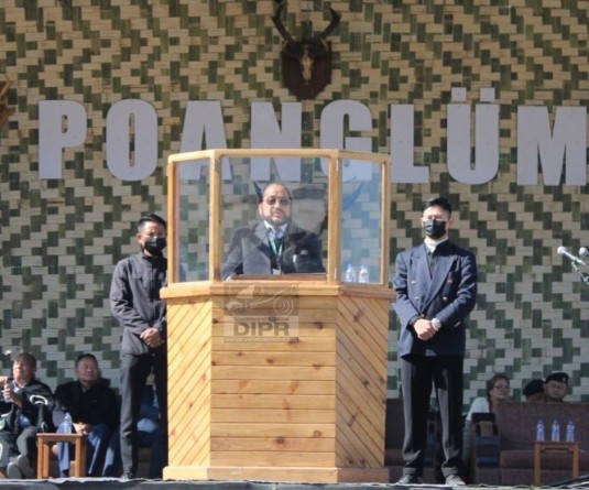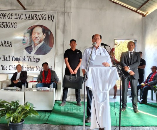 Deputy Commissioner Phek, Kumar Ramnikant addressing the Nehru Yuva Kendra Sangathan, Phek celebration held at Government Higher Secondary School, Phek on June 8 (DIPR Photo)