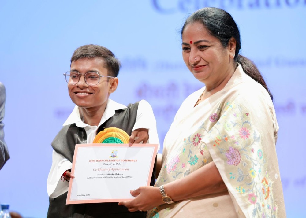 New Delhi: Delhi Chief Minister Rekha Gupta during the 99th anniversary of Shri Ram College of Commerce (SRCC) in New Delhi on Saturday, August 23, 2025. (Photo: IANS/CMO)