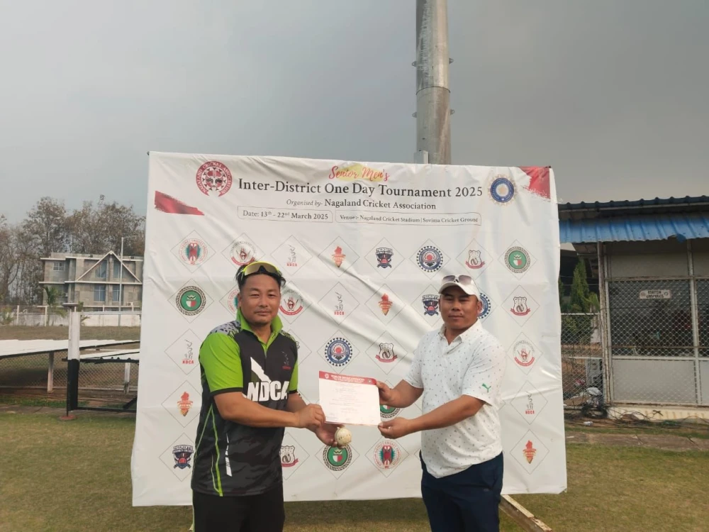 DIMAPUR, MARCH 20 (MExN): Dimapur stormed into the final of the Senior Men’s Inter-District Tournament 2025 with a commanding 10-wicket victory over Wokha in the semi-final held at Sovima Cricket Ground on Wednesday. A stellar bowling display, led by Hopongkyu Sangtam, restricted Wokha to a paltry 72 runs before Dimapur’s batters wrapped up the chase in just seven overs.