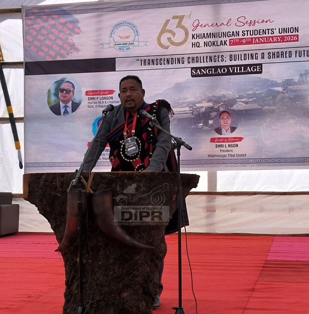 Speaking on the sub-theme “Roots and New Horizons,” Lamthiu challenged student delegates to transform the Khiamniungan community through the power of education. Drawing inspiration from the idea that education is the passport to the future, he encouraged students to master modern education to keep pace with a rapidly evolving world, according to a DIPR report.