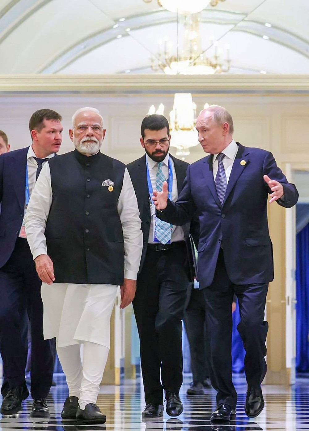 Tianjin: Prime Minister Narendra Modi meets Russian President Vladimir Putin on the sidelines of the SCO Summit, in Tianjin on Monday, September 01, 2025. (Photo: IANS/PMO)