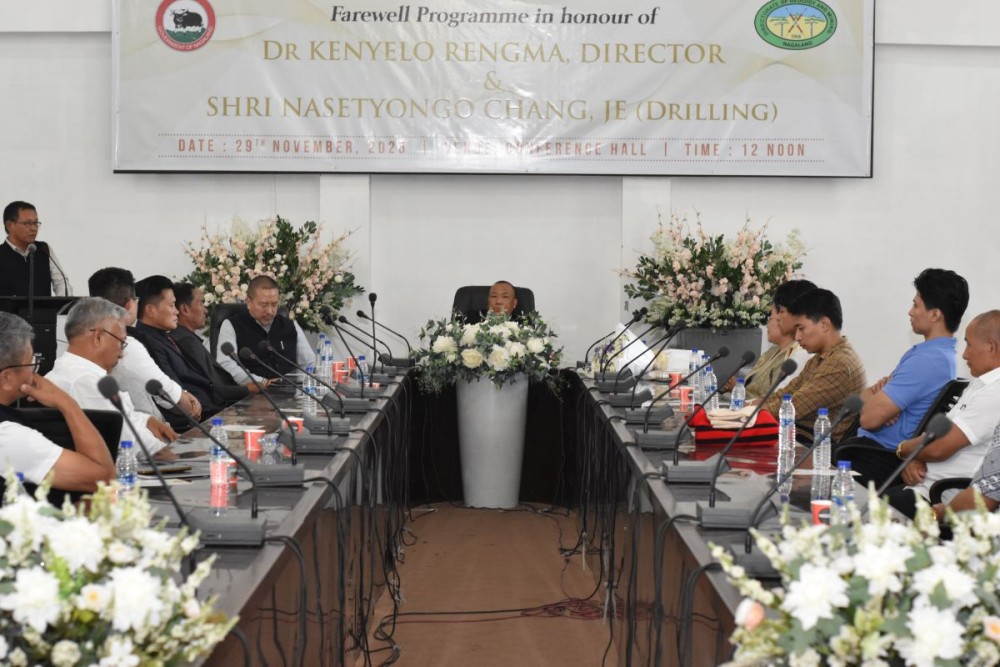 Dimapur, November 30 (MExN): A farewell programme was held on November 29 at the Directorate of Geology & Mining (DGM) Conference Hall, Dimapur to honour Dr Kenyclo Rengma, Director, and Nasetyongo Chang, Junior Engineer (Drilling), on the occasion of their retirement from government service. The event was organised by the department to acknowledge their dedicated service and contributions.