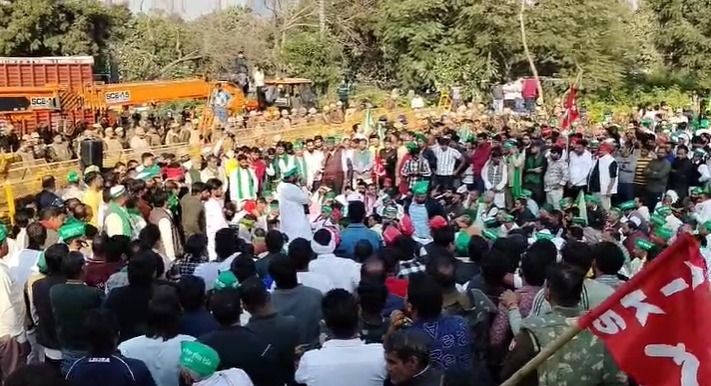 The protesters’ gathering point near the Maha Maya flyover in Noida grew bigger by noon as Bhartiya Kisan Parishad (BKP) and supporters of other farmers’ organisations broke some barricades and attempted to march towards New Delhi.