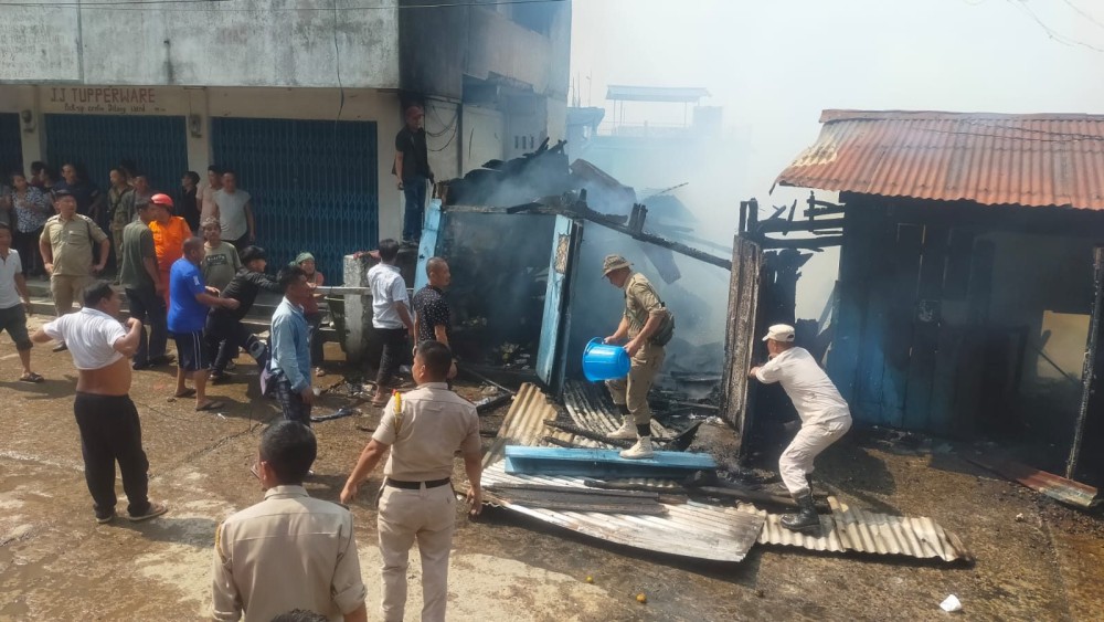 According to Bendangmayang, Chairman of Dilong Ward, the fire is suspected to have originated from a kutcha structure housing shops in the front and residential rooms at the back. He stated that shopkeepers were initially unaware of the fire, and it was passersby who alerted them after noticing smoke emanating from the building. “The fire most likely started from one of the back rooms where a shopkeeper resides. However, the exact cause is yet to be ascertained,” he said, adding that the building was old and had ageing electrical wiring.