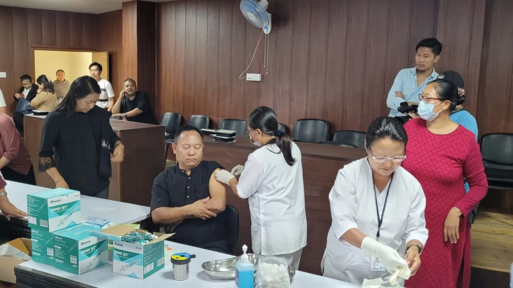 Hepatitis B vaccination of healthcare worker being carried out during the World Hepatitis Day at the Directorate of Health & Family Welfare, Kohima on July 28. (Morung Photo)