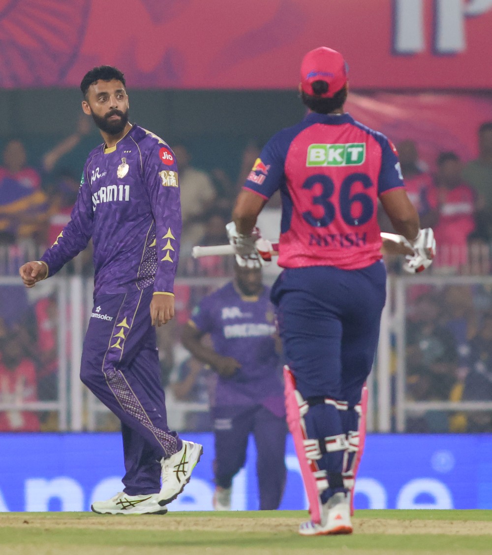 Chakaravarthy combined forces with Moeen Ali (2-17), playing due to Sunil Narine missing out with illness, to pick four wickets collectively in their eight overs and wreck RR’s plans at the Barsapara Cricket Stadium in Guwahati on Wednesday.