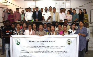 Players of Morning FC and Unity FC in action on April 15 at Indira Gandhi Stadium, Kohima.