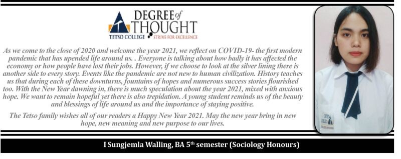 Degree of Thought is a weekly community column initiated by Tetso College in partnership with The Morung Express. Degree of Thought will delve into the social, cultural, political and educational issues around us. The views expressed here do not reflect the opinion of the institution. Tetso College is a NAAC Accredited UGC recognised Commerce and Arts College. The editors are Dr Hewasa Lorin, Dr Aniruddha Babar, Nisha Dahiya and Meren. For feedback or comments please email: dot@tetsocollege.org