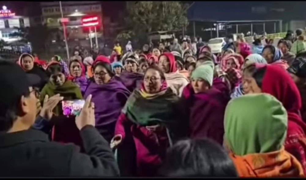 The protesters, mostly Meira Paibis (women folks), have blocked National Highway 102, Imphal-Moreh road since 10:30 am demanding legal action against the police personnel involved in the killing of the 'village volunteer' and release of all the arrested 'volunteers' without any condition.