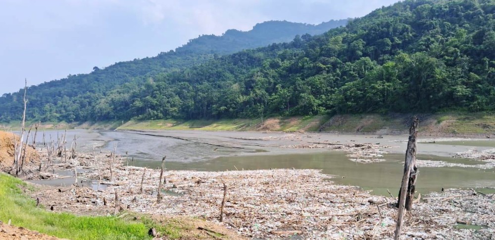 Plastic deposits at Doyang dam reservoir in Wokha district.