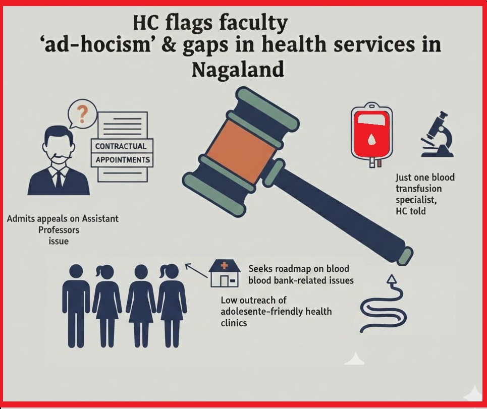 The Gauhati High Court, Kohima Bench, has flagged the State’s decade-long practice of faculty ‘ad-hocism’ and the acute shortage of blood transfusion specialists in Nagaland, raising concerns over higher education recruitment practices as well as gaps in critical health services.