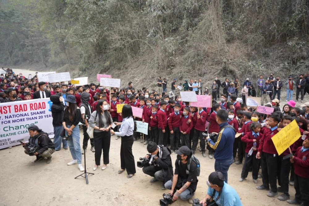 The protest, spearheaded by the Khuzama Students' Care Union (KSCU), was joined by village council members, the Khuzama Youth Organization (KYO), Khuzama Women Society, Khuzama Kohima Krotho, and concerned citizens from neighbouring villages.